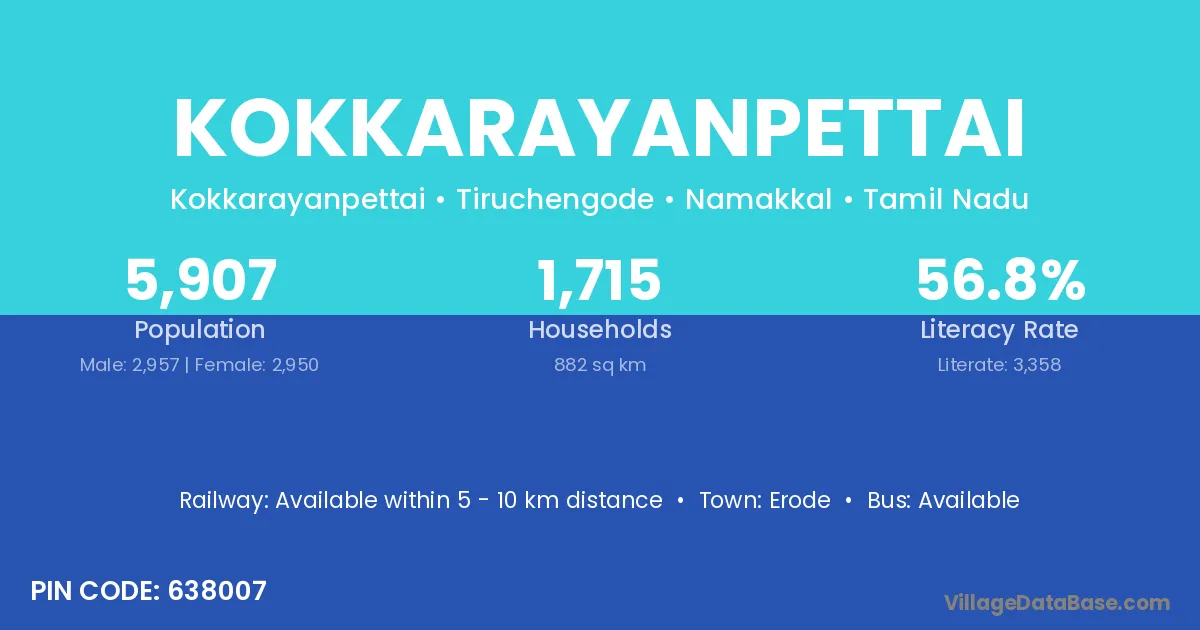 Erode is the nearest town to Kokkarayanpettai village for major economic activities