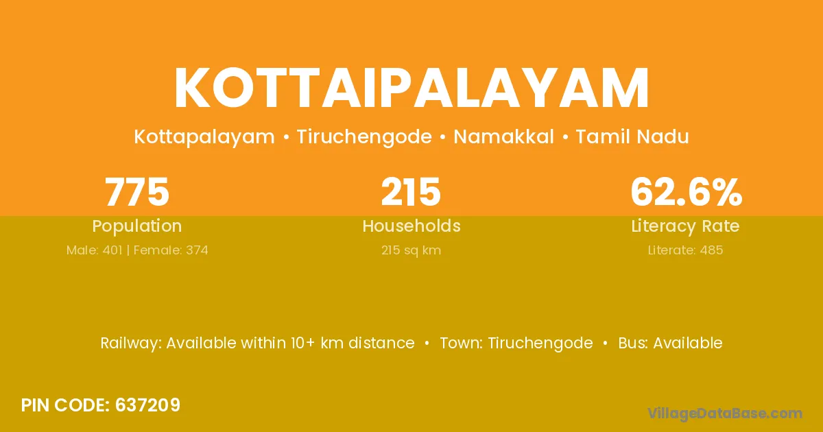 According to Census 2011 information, the village code of Kottaipalayam village is 637209.