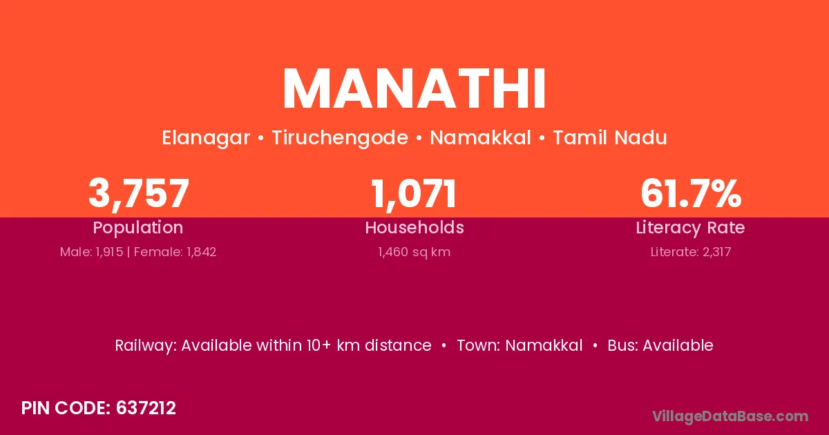 According to Census 2011 information, the village code of Manathi village is 637212.