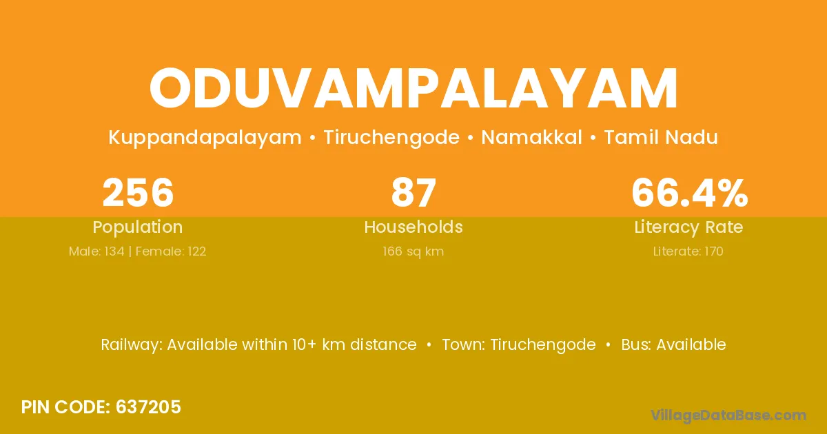 According to Census 2011 information, the village code of Oduvampalayam village is 637205.