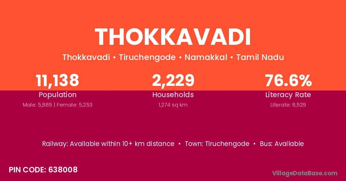 Tiruchengode is the nearest town to Thokkavadi village for major economic activities