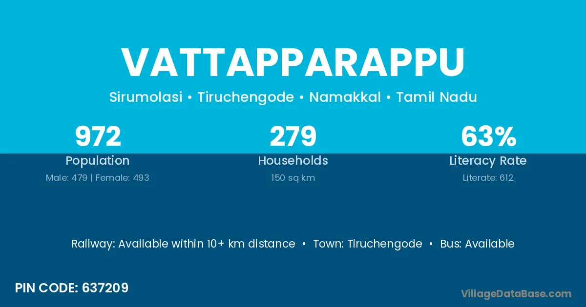 Tiruchengode is the nearest town to Vattapparappu village for major economic activities