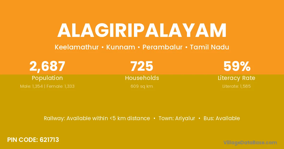 Ariyalur is the nearest town to Alagiripalayam village for major economic activities
