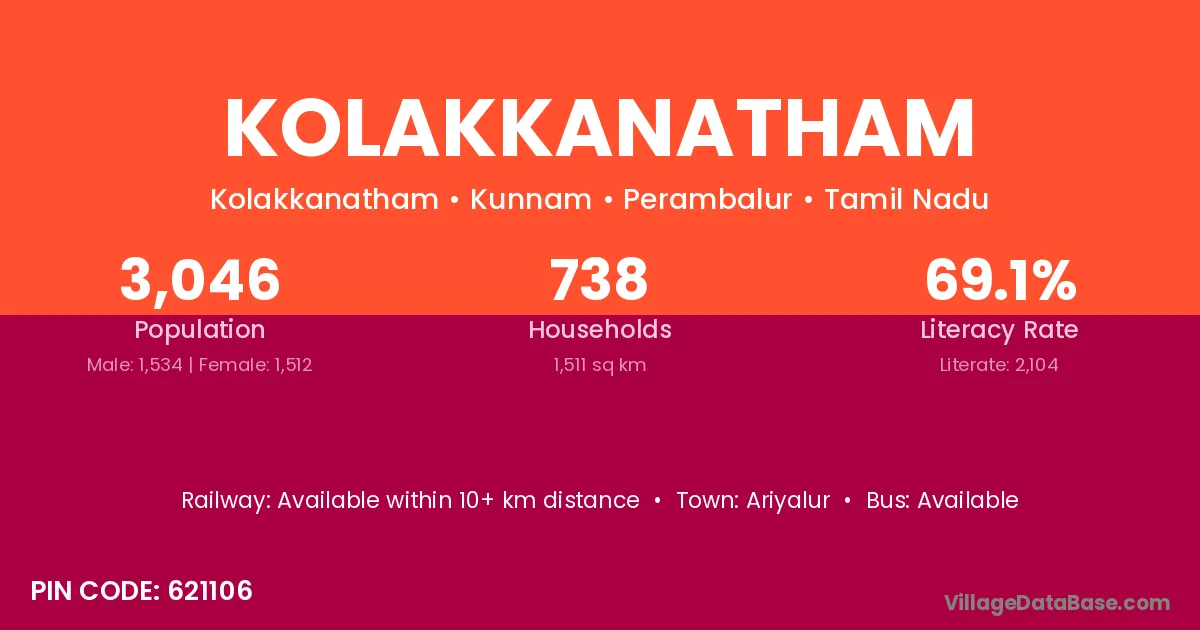 Kolakkanatham village has a total population of 3,046 people, of which 1,534 are males and 1,512 are females.