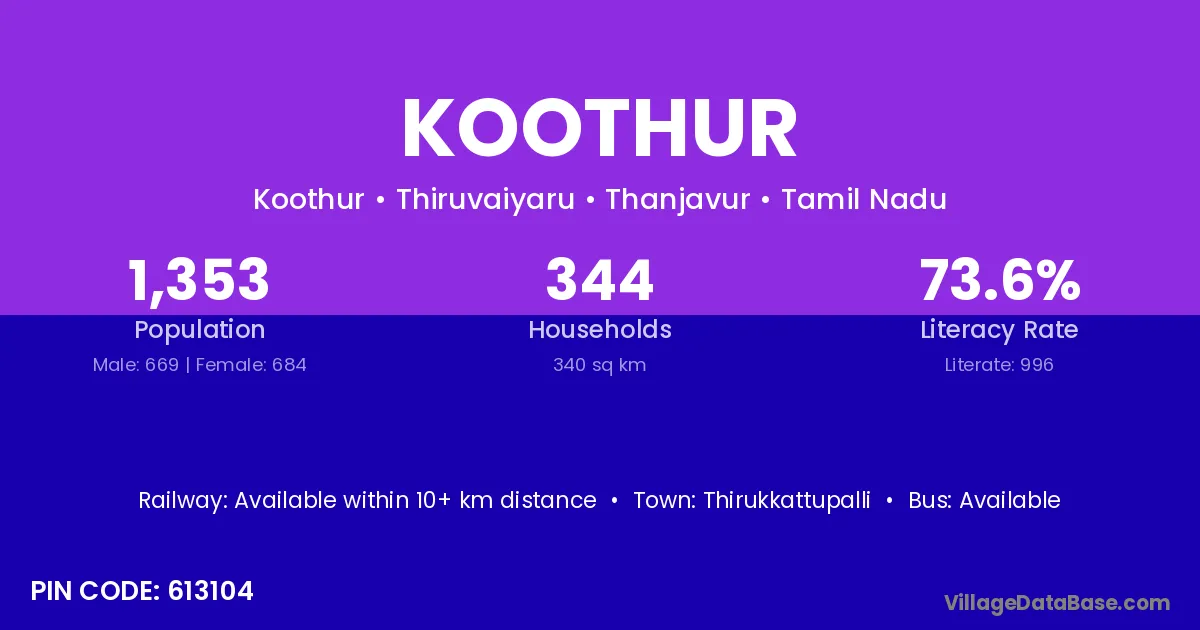 According to Census 2011 information, the village code of Koothur village is 621713.