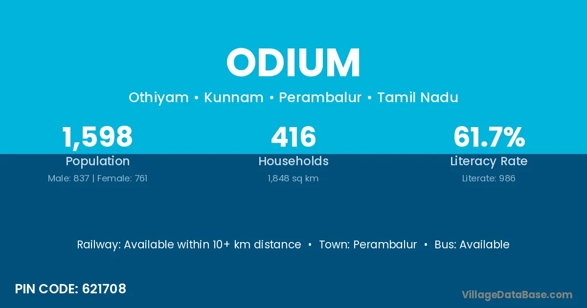 Odium village is located in the Kunnam Taluka of the Perambalur district in Tamil Nadu .