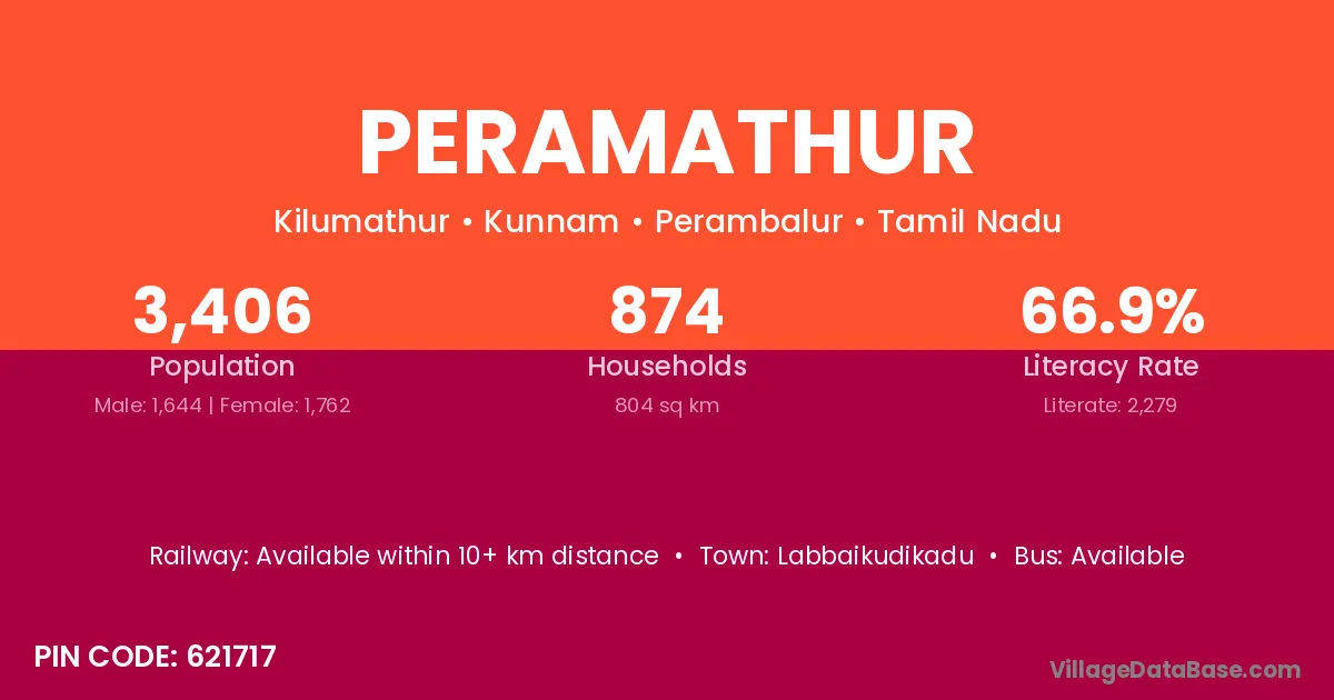 Labbaikudikadu is the nearest town to Peramathur village for major economic activities