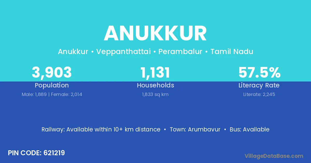 Arumbavur is the nearest town to Anukkur village for major economic activities