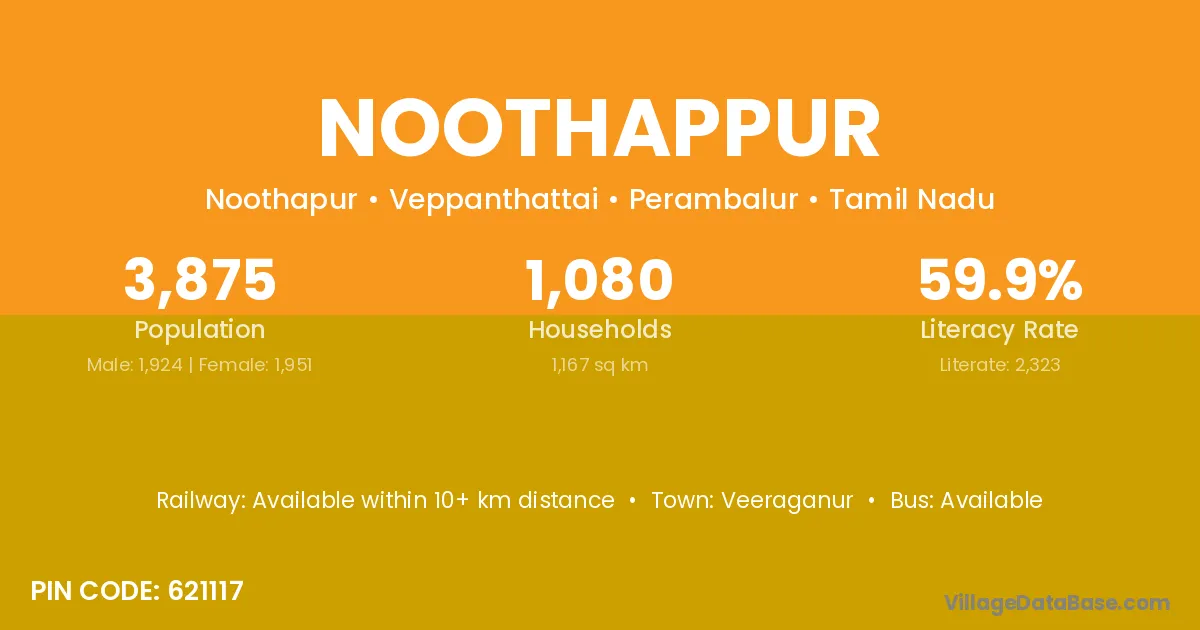 Noothappur village has a total population of 3,875 people, of which 1,924 are males and 1,951 are females.