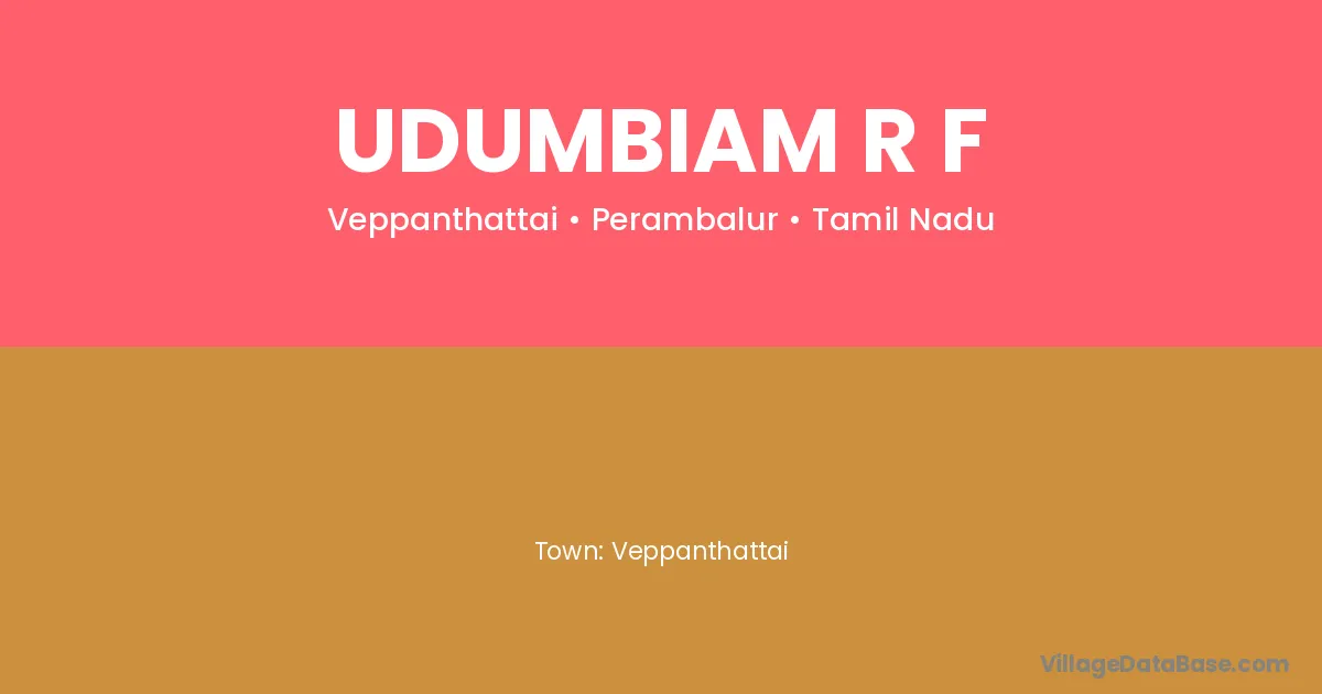 Udumbiam R F village is located in the Veppanthattai Taluka of the Perambalur district in Tamil Nadu .