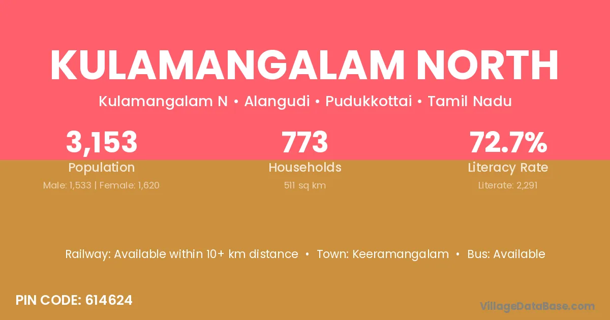 Kulamangalam North village has a total population of 3,153 people, of which 1,533 are males and 1,620 are females.