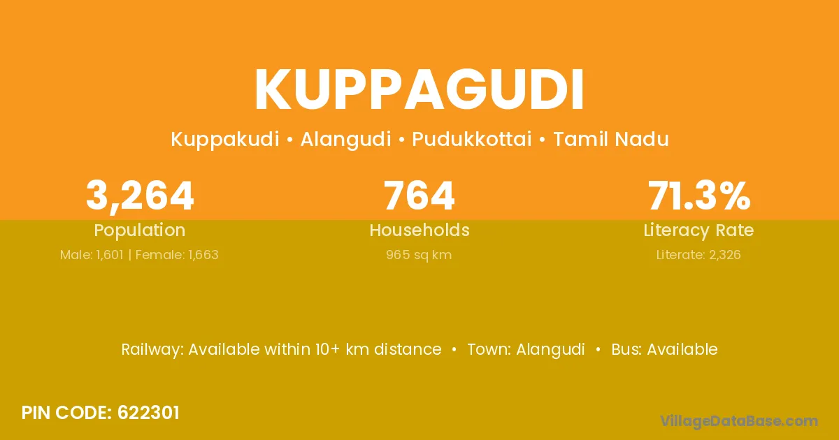 Alangudi is the nearest town to Kuppagudi village for major economic activities