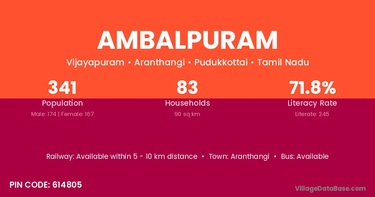 Aranthangi is the nearest town to Ambalpuram village for major economic activities