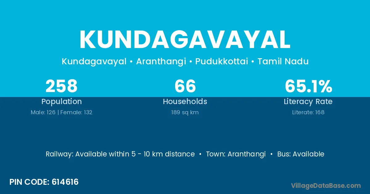 Kundagavayal village has a total population of 258 people, of which 126 are males and 132 are females.