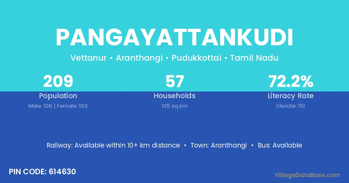 Pangayattankudi village has a total population of 209 people, of which 106 are males and 103 are females.