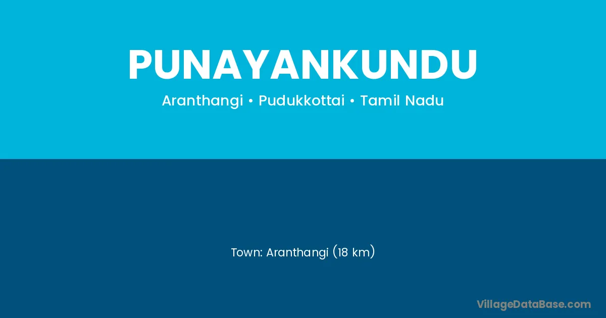 Aranthangi (18 km) is the nearest town to Punayankundu village for major economic activities and is located approximately 18 km away.