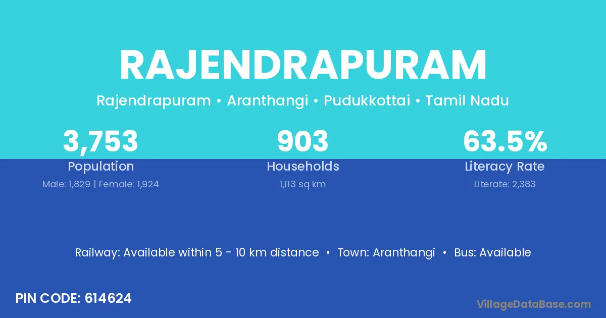 Aranthangi is the nearest town to Rajendrapuram village for major economic activities