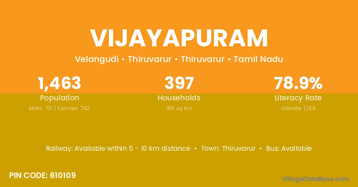 Vijayapuram village has a total population of 2,153 people, of which 1,046 are males and 1,107 are females.