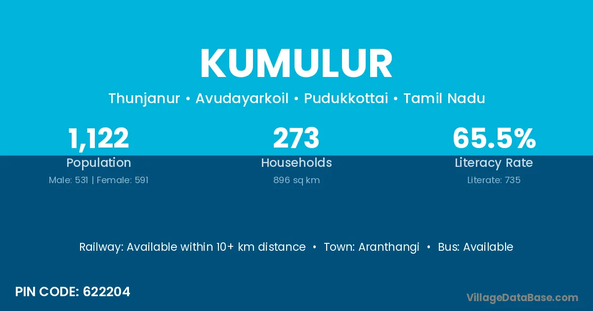 Aranthangi is the nearest town to Kumulur village for major economic activities