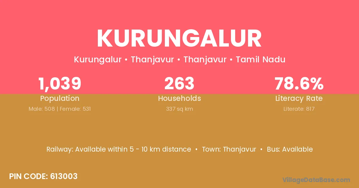 Kurungalur village has a total population of 1,352 people, of which 665 are males and 687 are females.