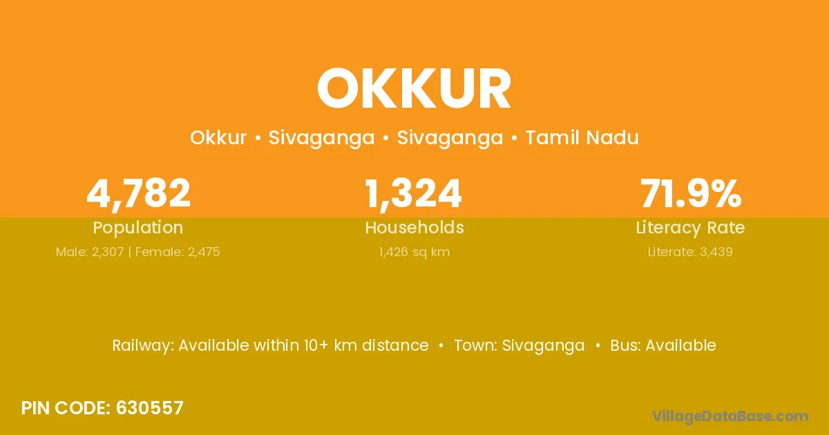 Aranthangi is the nearest town to Okkur village for major economic activities