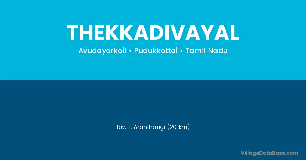 Aranthangi (20 km) is the nearest town to Thekkadivayal village for major economic activities and is located approximately 20 km away.