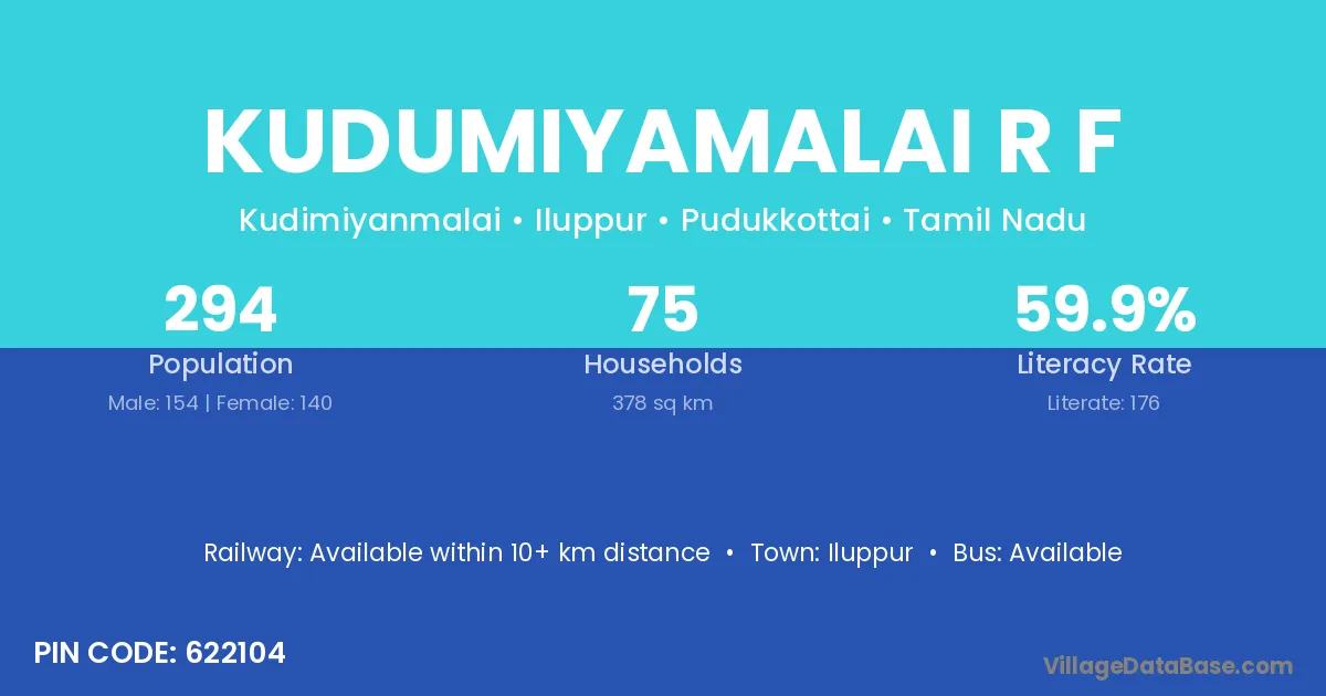Kudumiyamalai R F village has a total population of 294 people, of which 154 are males and 140 are females.