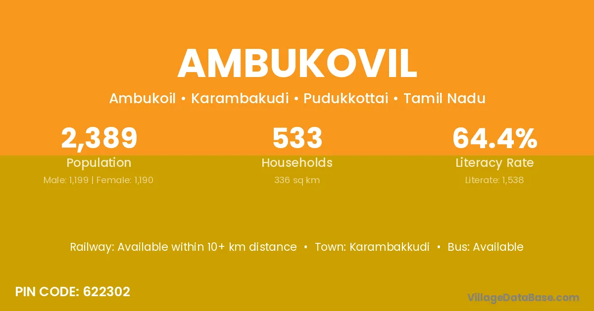 Karambakkudi is the nearest town to Ambukovil village for major economic activities