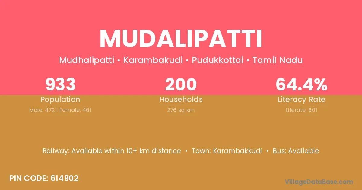 Karambakkudi is the nearest town to Mudalipatti village for major economic activities