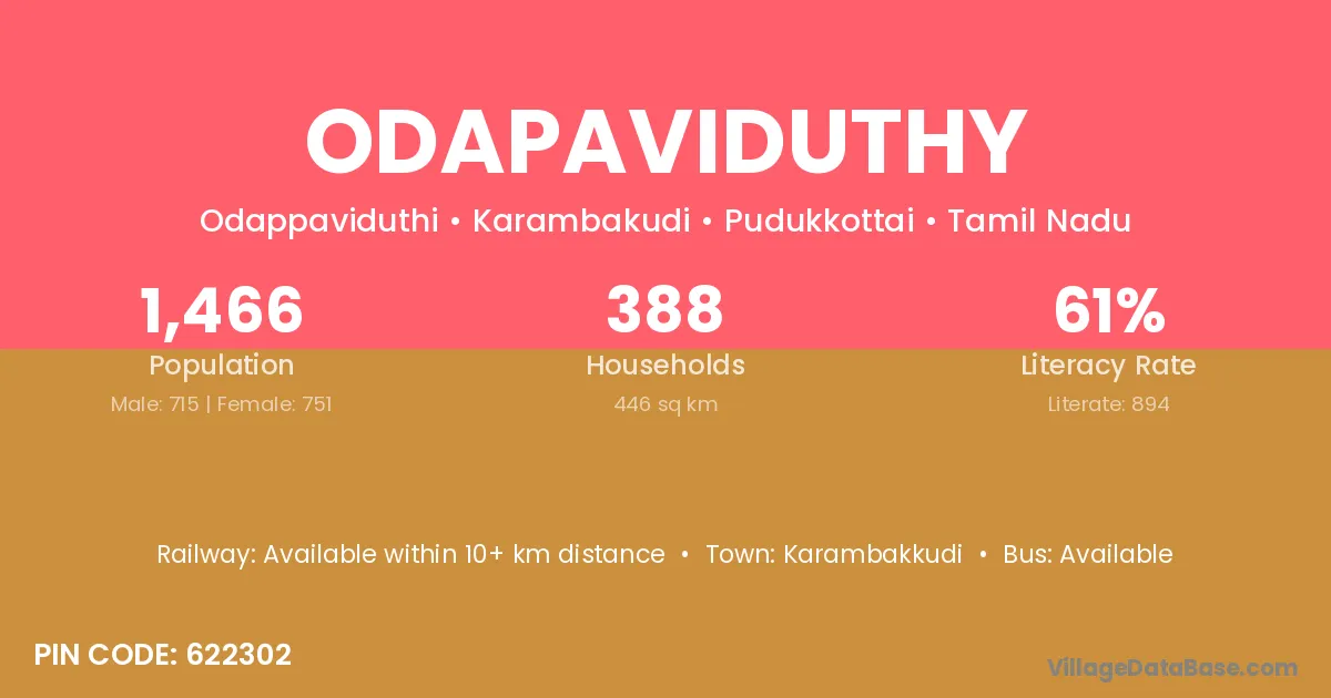 Karambakkudi is the nearest town to Odapaviduthy village for major economic activities