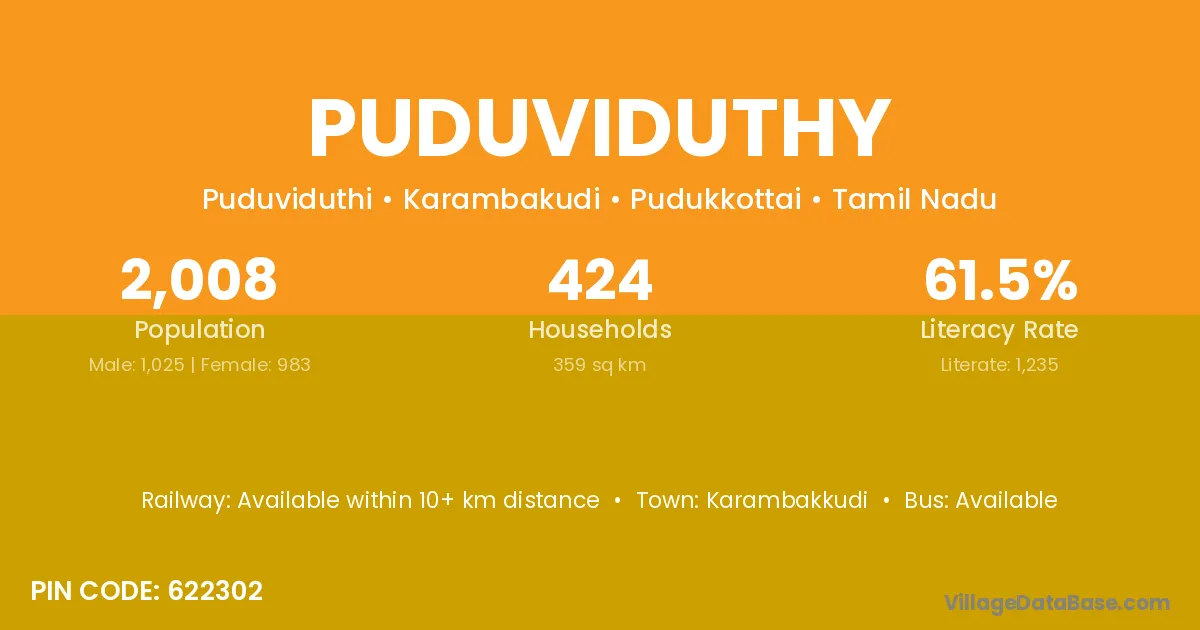 Karambakkudi is the nearest town to Puduviduthy village for major economic activities