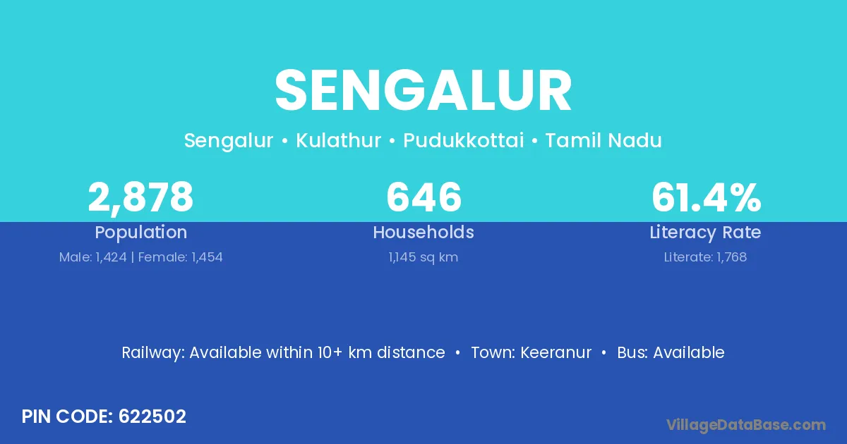 Keeranur is the nearest town to Sengalur village for major economic activities