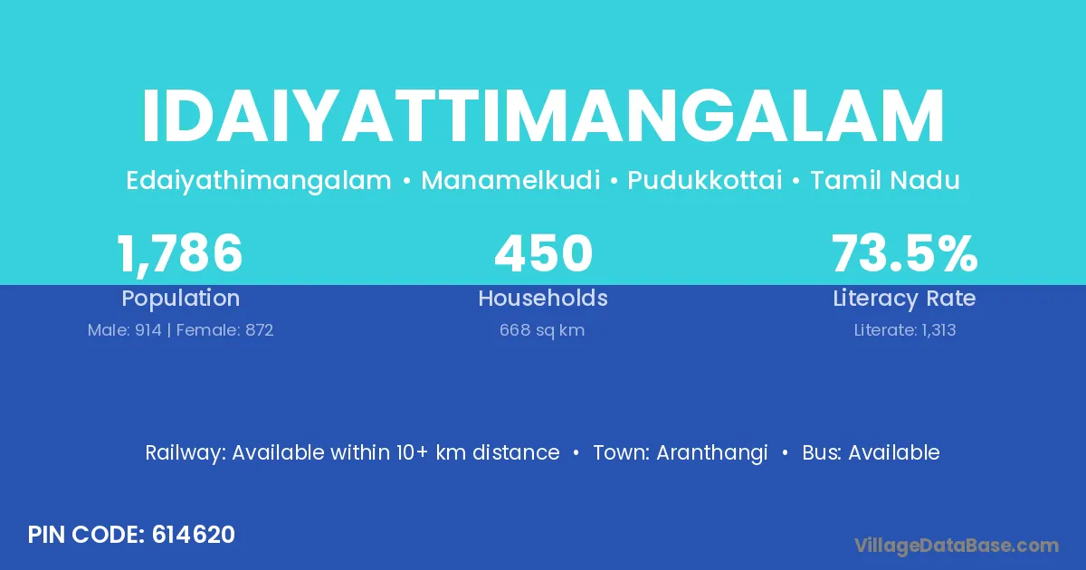 Aranthangi is the nearest town to Idaiyattimangalam village for major economic activities