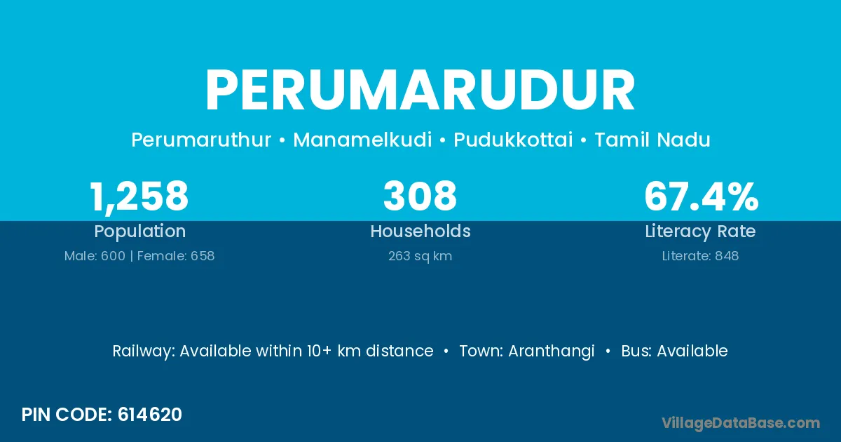 Aranthangi is the nearest town to Perumarudur village for major economic activities