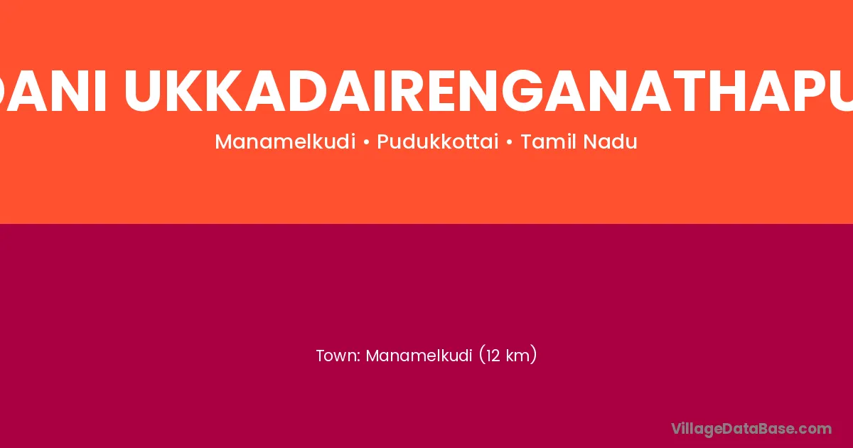 Manamelkudi (12 km) is the nearest town to Rendani Ukkadairenganathapuram village for major economic activities and is located approximately 12 km away.