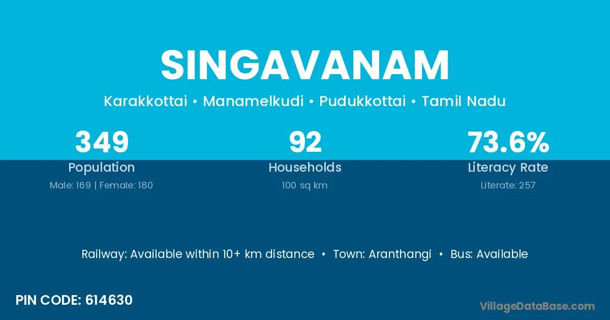 Aranthangi is the nearest town to Singavanam village for major economic activities