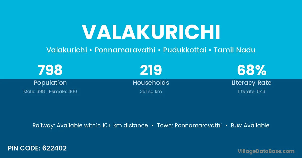 Ponnamaravathi is the nearest town to Valakurichi village for major economic activities
