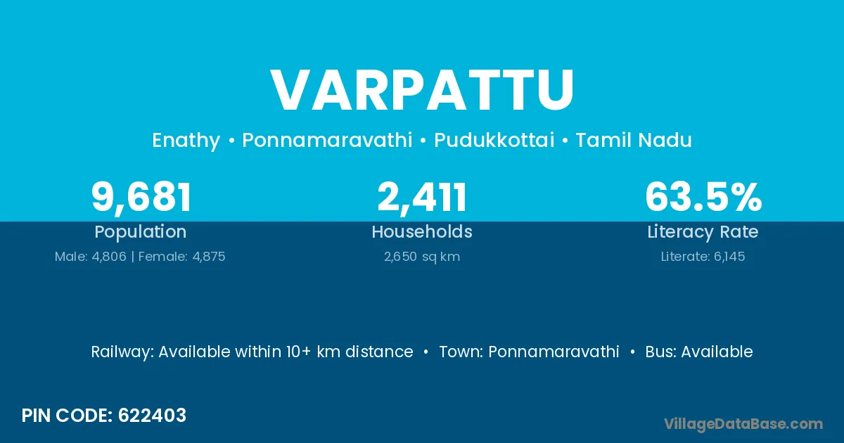 Varpattu village has a total population of 9,681 people, of which 4,806 are males and 4,875 are females.