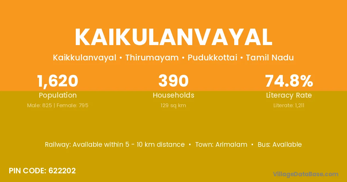 According to Census 2011 information, the village code of Kaikulanvayal village is 622202.