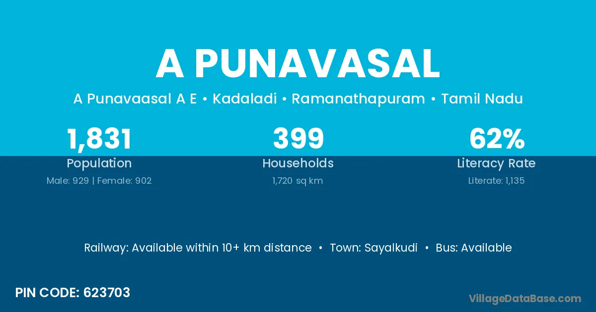 Sayalkudi is the nearest town to A Punavasal village for major economic activities