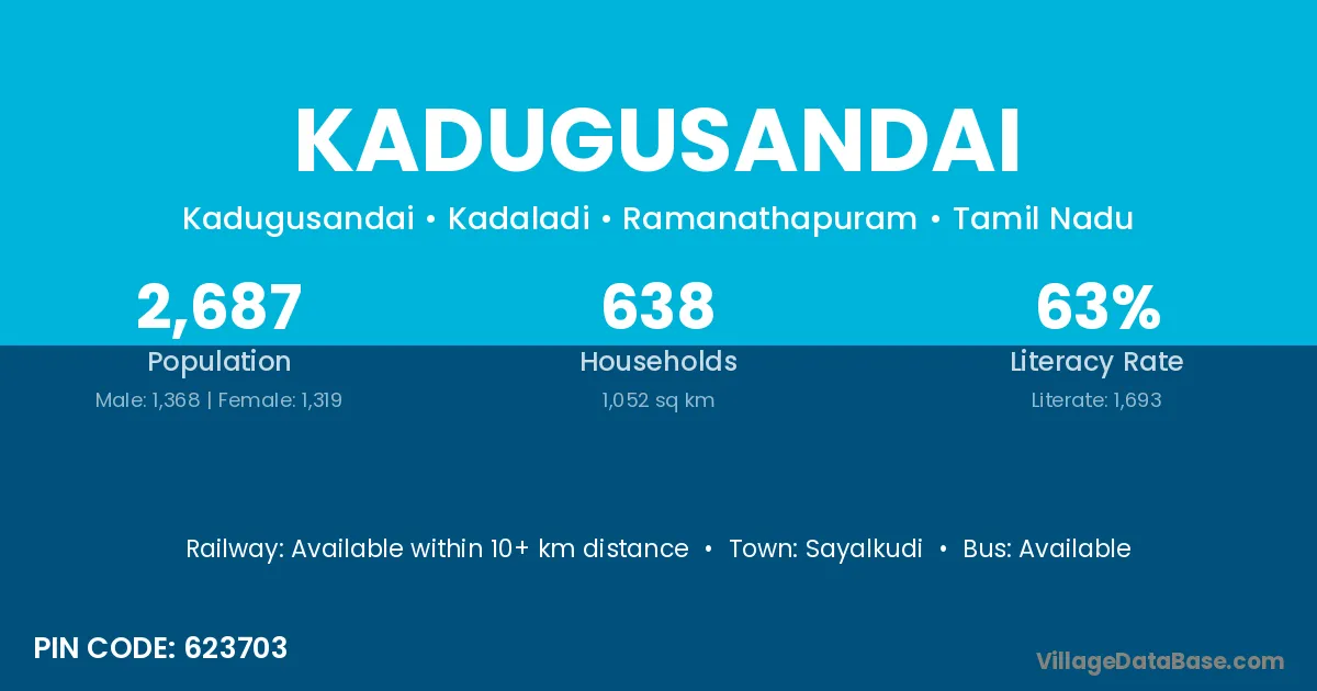Sayalkudi is the nearest town to Kadugusandai village for major economic activities