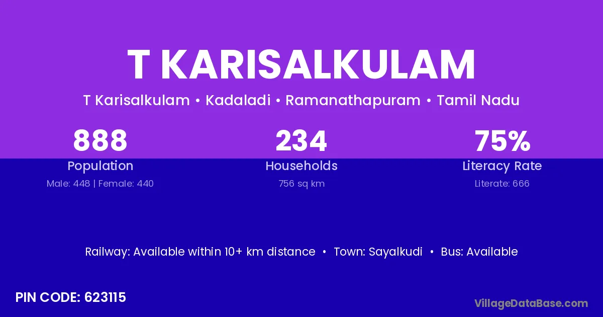 According to Census 2011 information, the village code of T Karisalkulam village is 623115.