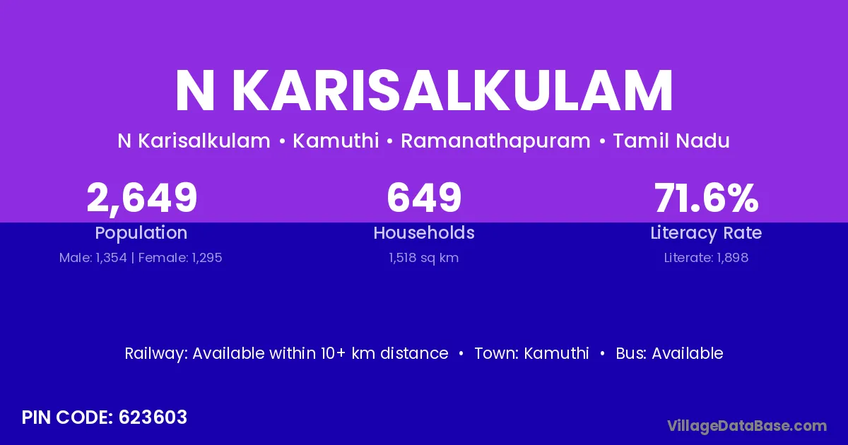 Kamuthi is the nearest town to N Karisalkulam village for major economic activities