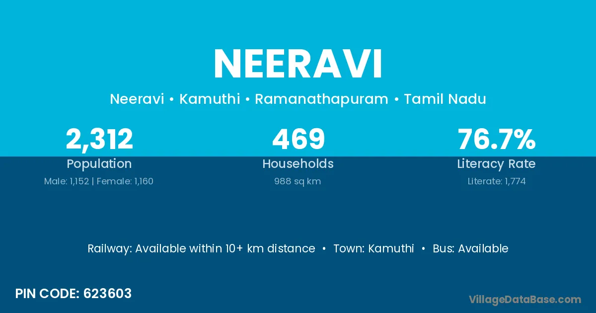 Kamuthi is the nearest town to Neeravi village for major economic activities