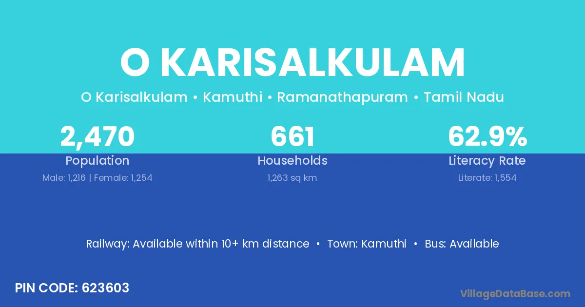 Kamuthi is the nearest town to O Karisalkulam village for major economic activities