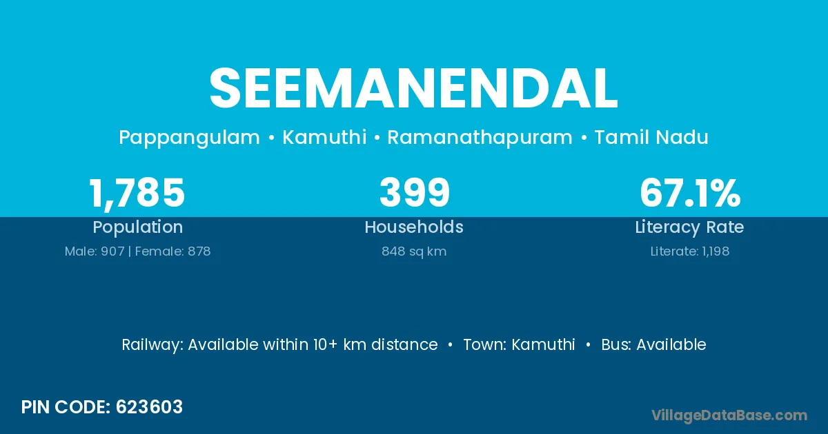 Kamuthi is the nearest town to Seemanendal village for major economic activities