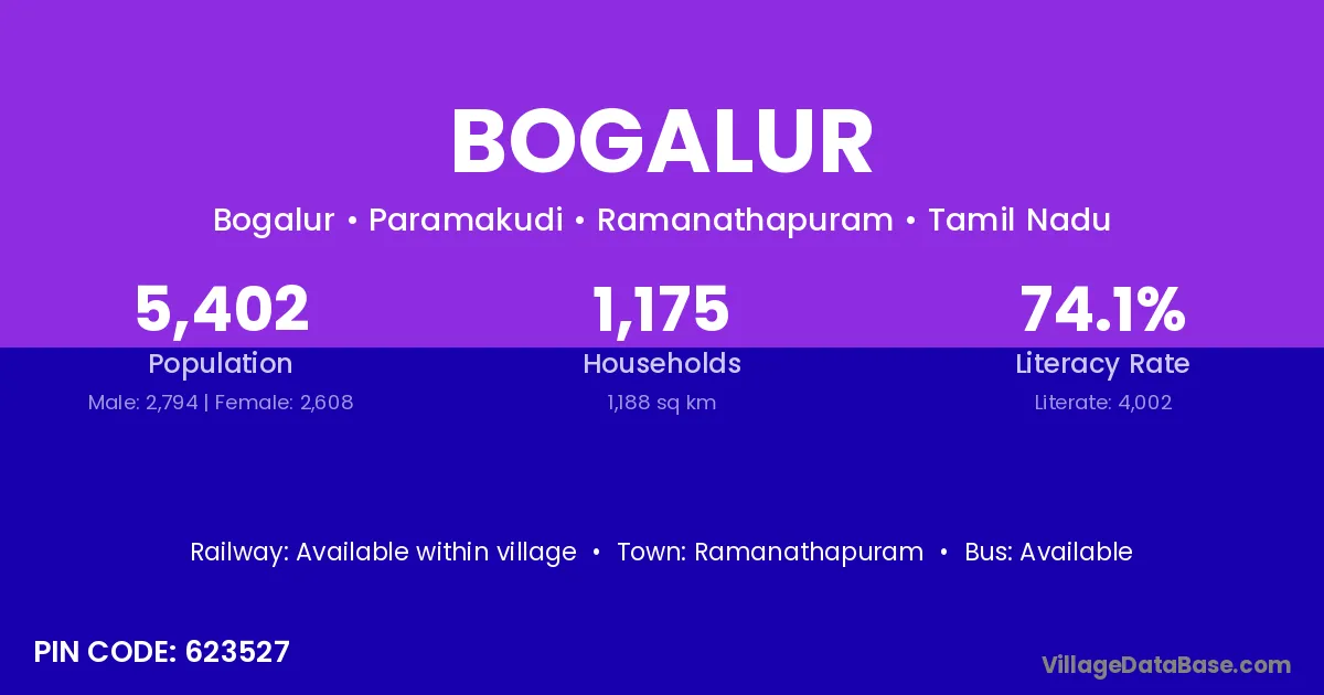 Ramanathapuram is the nearest town to Bogalur village for major economic activities