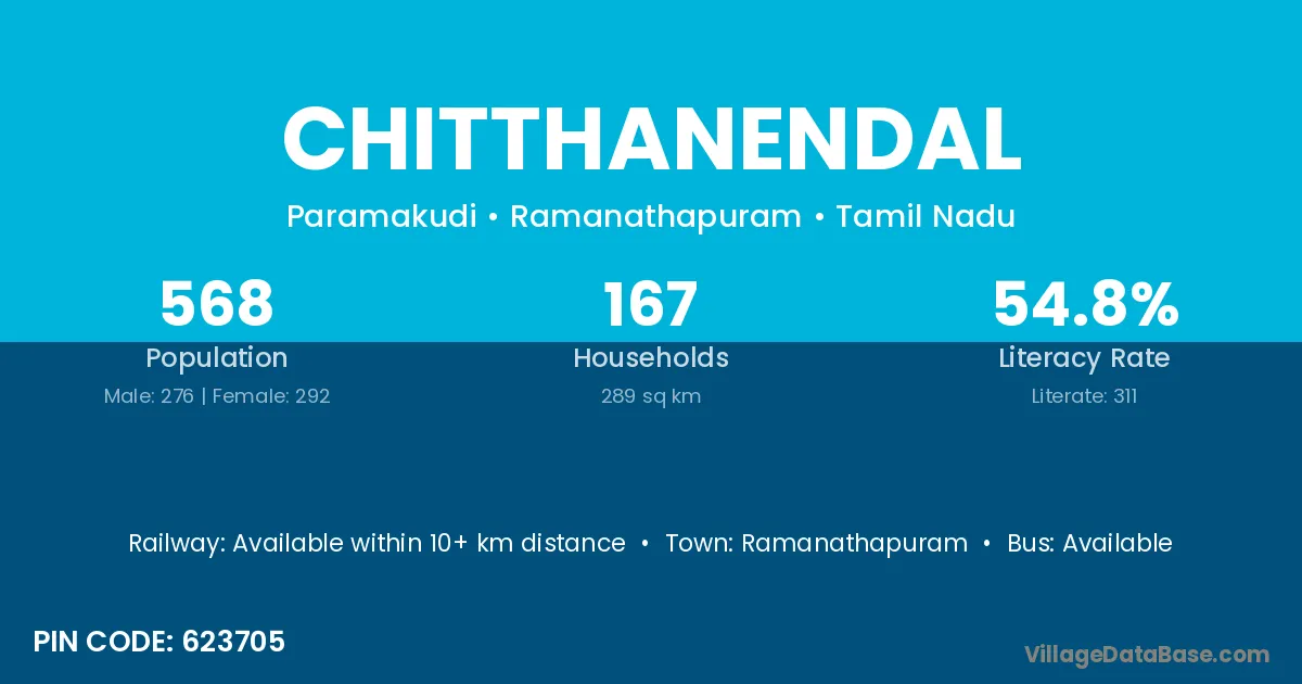 Ramanathapuram is the nearest town to Chitthanendal village for major economic activities