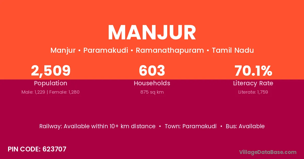 Paramakudi is the nearest town to Manjur village for major economic activities