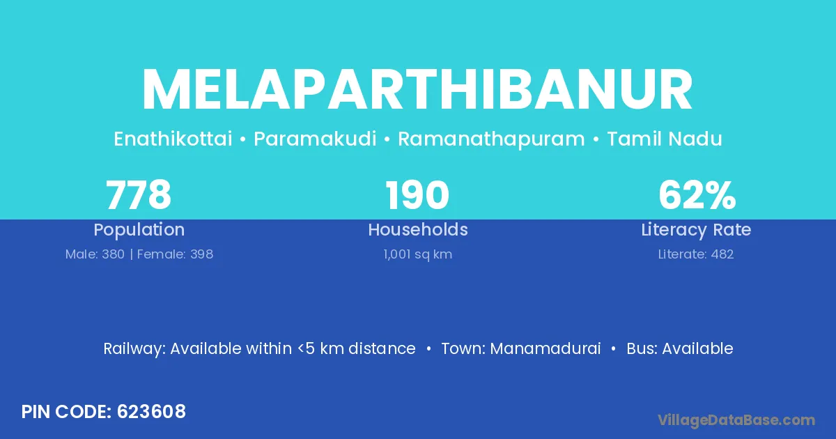 Manamadurai is the nearest town to Melaparthibanur village for major economic activities